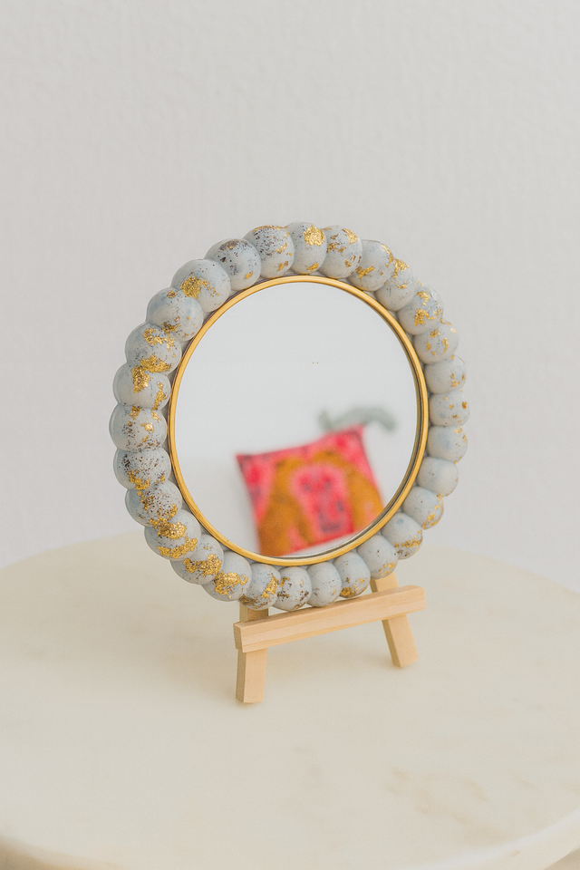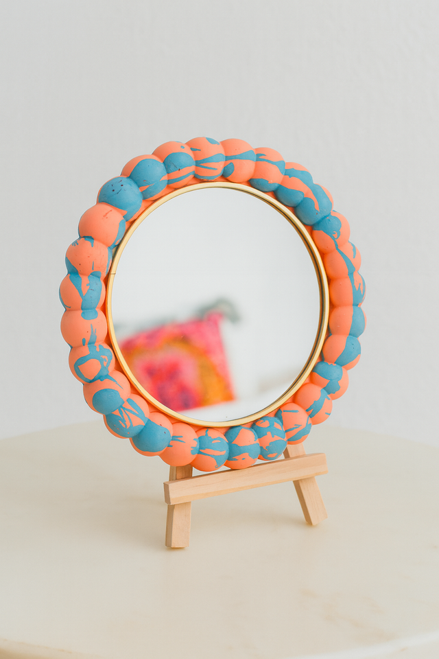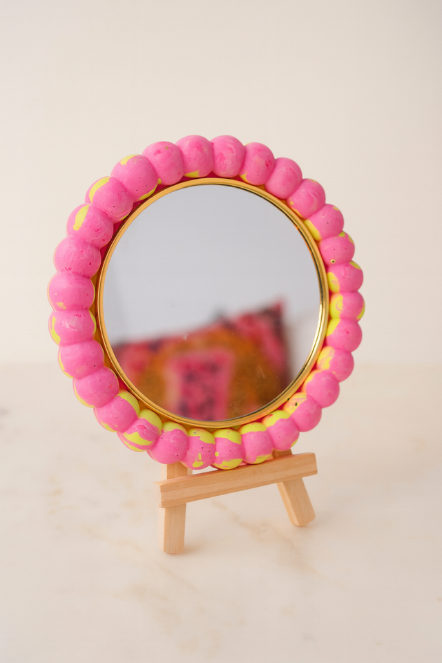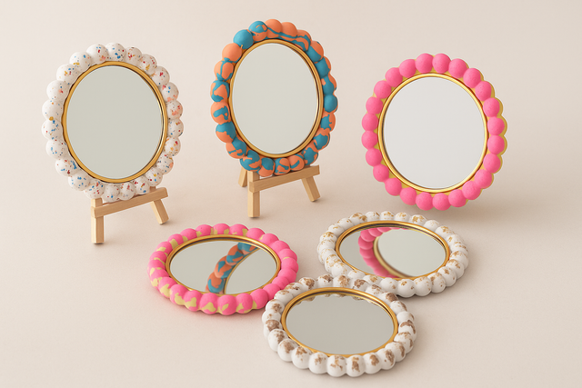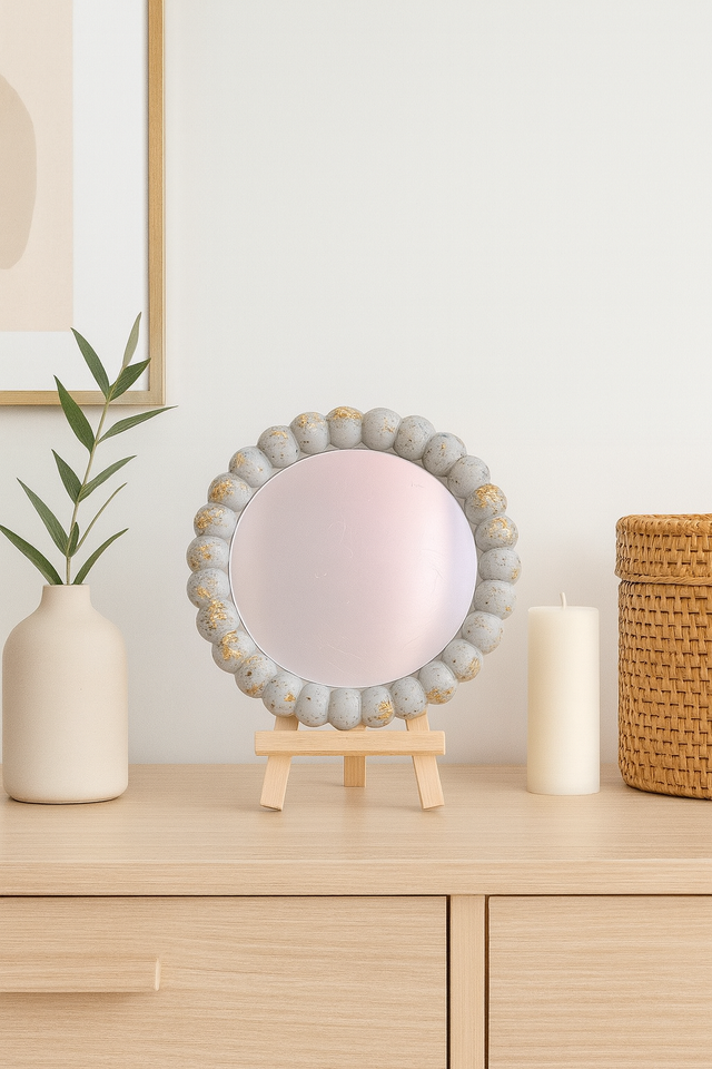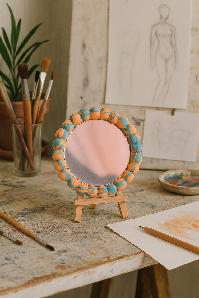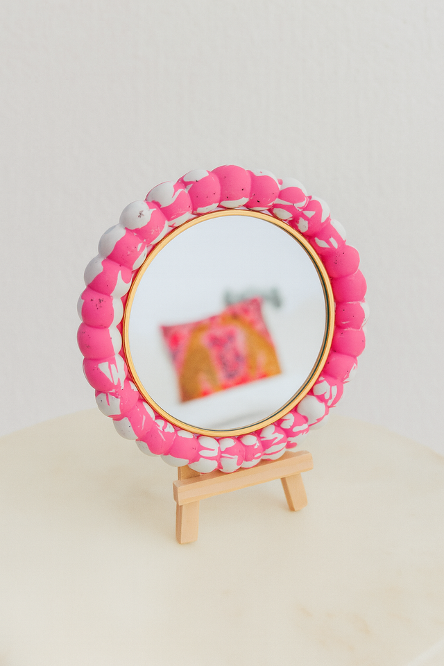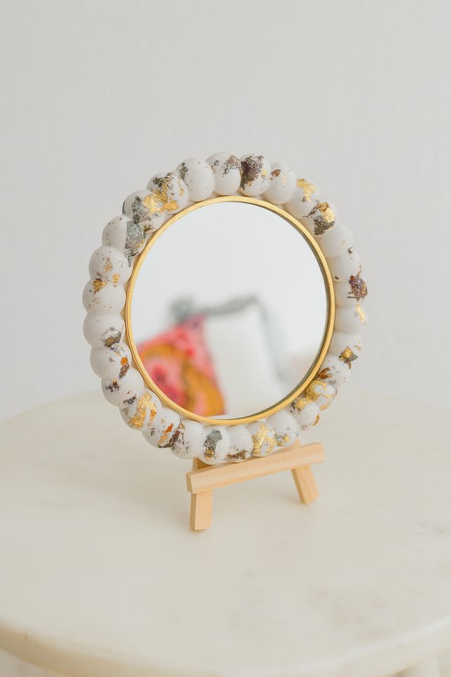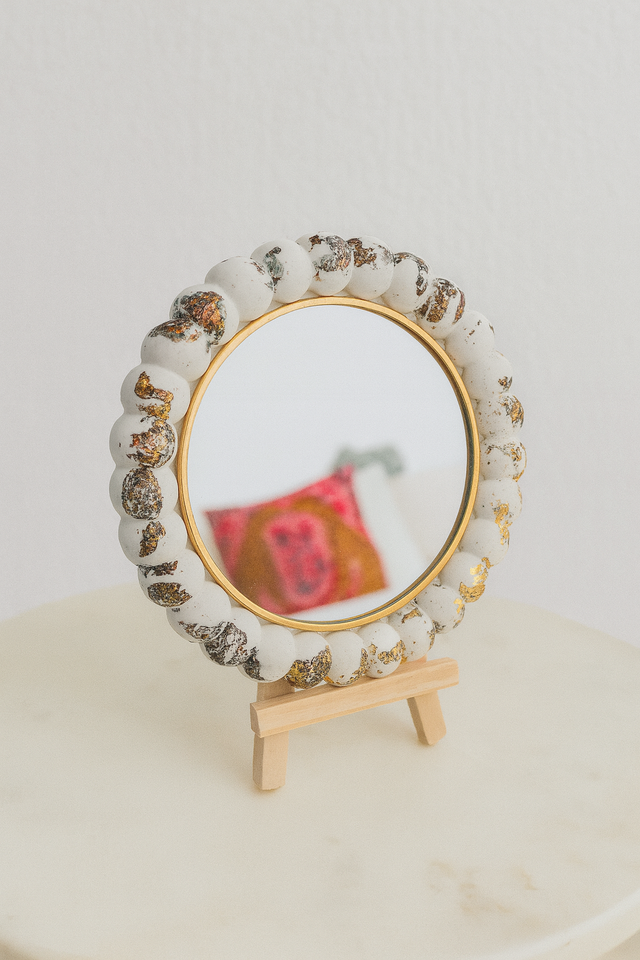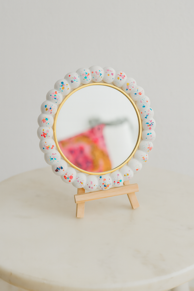 Chaque miroir est vendu accompagné de son chevalet et d'une accroche 3M pour être soit présenté sur un meuble ou accroché au mur.