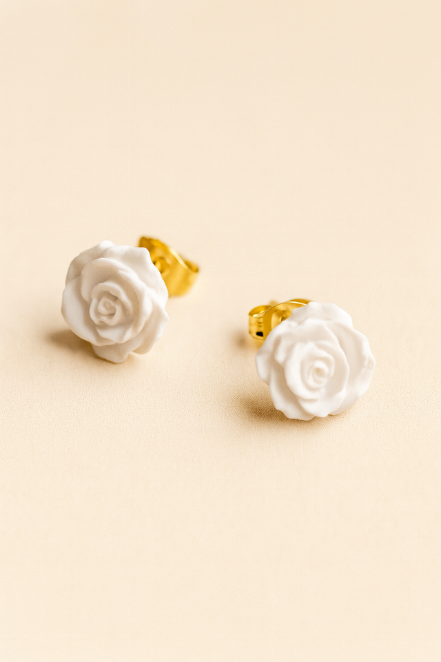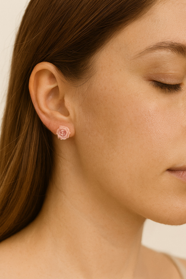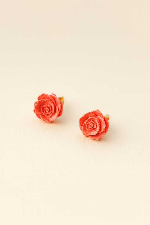 Ces boucles d’oreilles en forme de rose sont entièrement fabriquées à la main dans mon atelier.